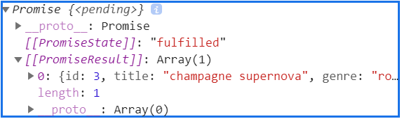 fetch를 통해 express rest api(서버)의 해당 주소로 접근하였다. 그에 해당되는 response 를 console.log로 찍어보면 다음 사진과 같이 "fulfilled" 상태와 데이터도 성공적으로 확인할 수 있다.